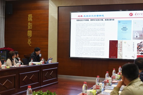 汇报会上,我校鞠成国教授汇报了我校基地在技术传承、理论传承、人才传承、文化传承、应用转化等方面的常规建设工作,并重点介绍了具有本基地特色的4个典型案例,包括基地、学会、学科三位一体建设模式,《中药炮制简史》编写与应用,微型饮片的开发与研究,中药炮制技术传承学习班的建立与活动开展情况等。专家组高度评价了我校中药炮制技术传承基地建设成果,特别是对我校凝练的4个典型案例给予了充分肯定,同时也为本基地未来的建设提出了改进意见。