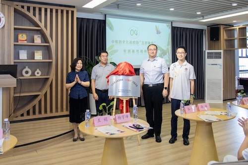 开营仪式上,刘继东、王浩、王娟、杨宇峰共同为中医药文化进校园“五育融合”实践基地揭牌。