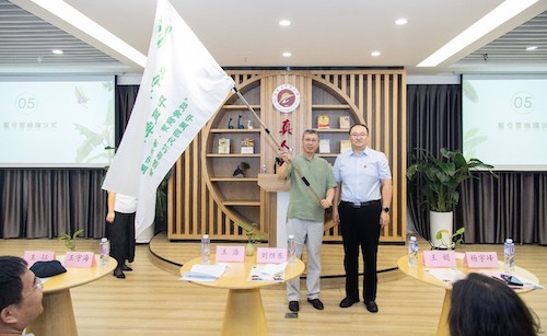 随后,刘继东为王征授“岐黄萌芽 传承中医”中医药文化体验营营旗。