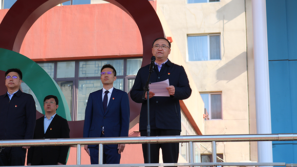 5月8日7时,晨光熠熠,微风徐徐。学校隆重举行“奋进新征程,共筑强国梦”主题升旗仪式。参加仪式的有学校副校长刘继东,学生工作干部,辅导员老师以及2000名学生代表,中国人民解放军仪仗司礼大队、天安门国旗护卫队正式队员指导并参与升旗仪式。学生工作处处长李睿主持。