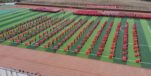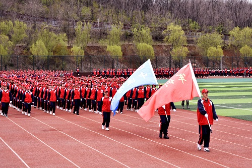 如果信念有颜色,那么一定是中国红。由300名参训学生组成的旗海呈现在操场上,伴随着全场齐唱《强军战歌》的歌声不断变化阵型,展现了同学们的激情与活力,传递出浓厚的家国情怀。