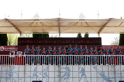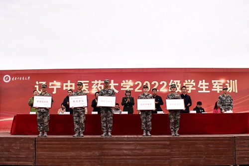与会领导为优秀集体、优秀学员颁奖。军训二营针灸推拿学院获“模范营队”荣誉称号,军训一营我院获智勇双全奖,军训三营中西医结合学院获追求卓越奖,军训四营经济管理学院、信息工程学院、外国语学院、医学检验学院、实验动物医学与科学学院获激情飞扬奖,军训五营护理学院获雄姿英发奖,大连校区军训六营获“优秀营队”荣誉称号。共有89名学生荣获优秀学员。