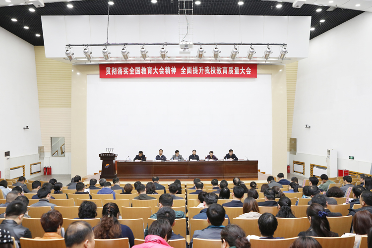4月24日,学校召开贯彻落实全国教育大会精神全面提升我校教育质量大会。学校领导班子、副处级以上领导干部、各教研室主任、教师代表、学生代表参加了会议。党委副书记吕晓东主持会议。