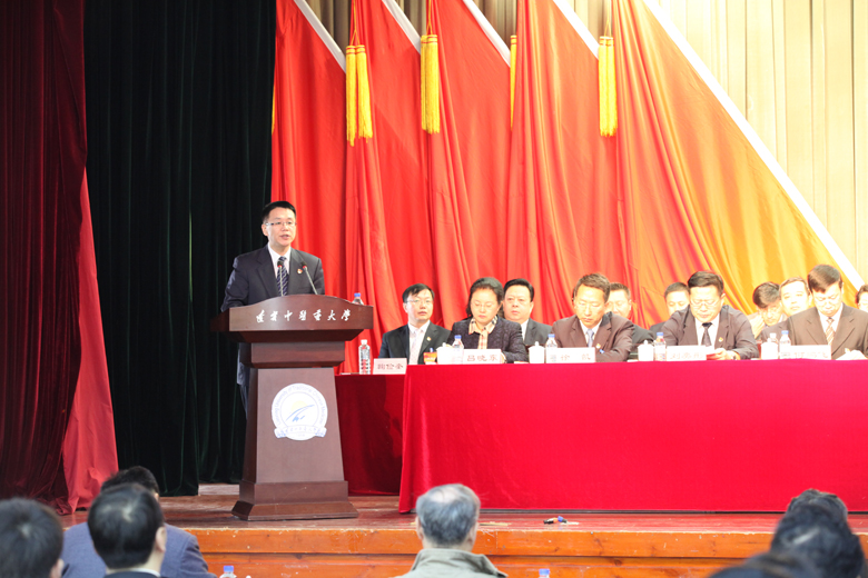 曾庆捷同志代表中共yl6809永利官网第一届委员会作题为《不忘初心,砥砺前行,为建设内涵丰富、特色优势突出的高水平中医药大学而努力奋斗》的报告。