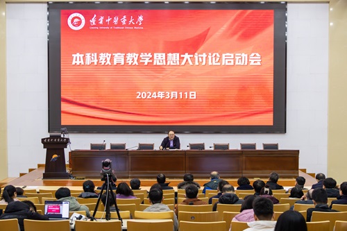 为全面落实立德树人根本任务,做好新一轮本科教育教学审核评估工作,3月11日下午,学校召开本科教育教学思想大讨论启动大会,学校领导、相关职能部门负责人、学校教学督导专家、各教学单位院长、书记、副书记、主管教学副院长、教学秘书、辅导员、教务处及高等中医药教育研究及评价中心科级以上干部等200余人参会。大会由学校党委副书记刘继东主持。