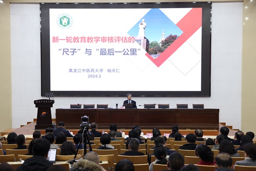 为推进学校本科教育教学审核评估迎评促建工作,进一步明确审核评估工作核心和重点,3月20日下午,学校召开本科教育教学审核评估专家报告会,特邀黑龙江中医药大学教育督导组组长杨天仁教授作专家报告。会议以线上线下相结合,“主会场+分会场”的形式召开,沈阳校区学术报告厅设主会场,大连校区、本溪校区、四所附属医院及各学院设视频分会场。学校党委书记吕晓东、党委副书记刘继东、纪委书记张锦徽、副校长戴旭、副校长任路,学校教学督导专家、学校本部科级及以上干部、专职辅导员、组织员、教学秘书、教师代表和学生代表在主会场线下参会。教研室主任,全体教师在各分会场参会,参会人员达1000余人。