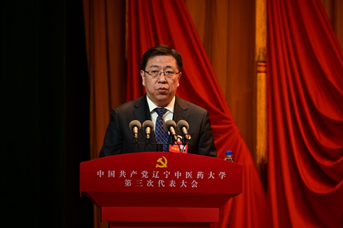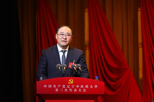 吕晓东同志代表中国共产党yl6809永利官网第二届委员会作题为《立德树人守初心 振兴岐黄担使命 为建设高水平有特色的一流中医药大学而努力奋斗》的报告。