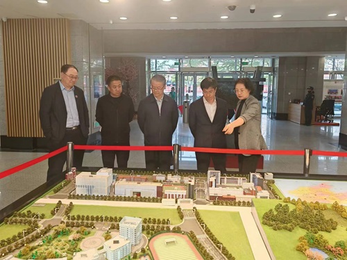 座谈会后,张东群一行在吕晓东和刘继东的陪同下参观了学校图书馆。