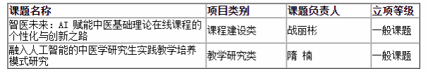 近日,由中国学位与研究生教育学会医药科工作委员会会同全国医学专业学位研究生教育指导委员会开展的2024年全国医药学研究生在线课程建设与教学研究课题申报工作,公布了立项结果,经评审共有91项课题获准立项。我校获批课程建设类一般课题1项、教学研究类一般课题1项。